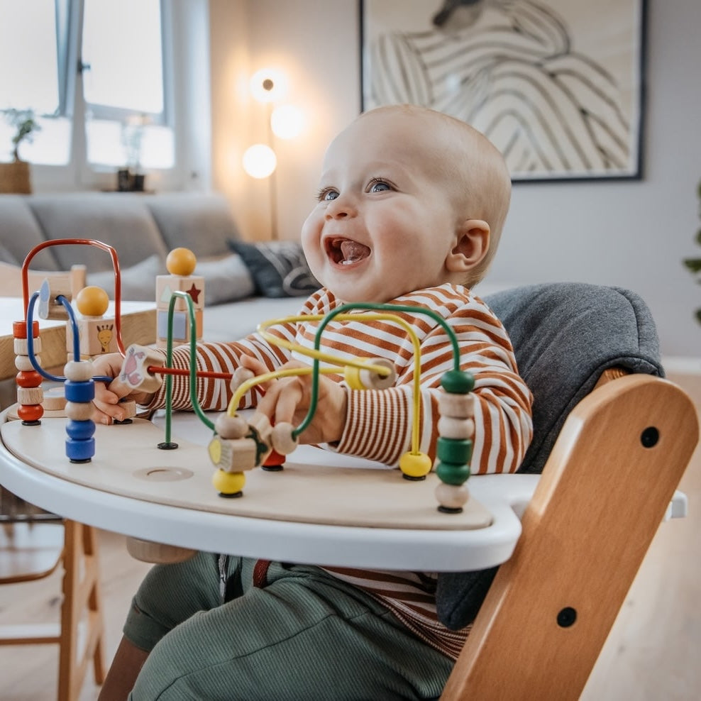 With the right accessories, the Alpha+ becomes a true everyday companion. The Alpha+ is much more than just a highchair. It not only grows with your child but can also be perfectly adapted to your everyday life with a wide range of accessories. With our Bouncers and Bouncer Sets, your baby can join you safely and comfortably at the family table right from birth. As your child grows, soft seat cushions, practical storage boxes, and non-slip tray mats provide extra comfort and order. For even more fun in daily life, lovingly designed play options turn the Alpha+ into a favorite spot. This way, a highchair becomes a flexible family piece that keeps adapting to your needs – from the very first day well into childhood and beyond.